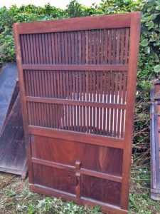 この度買い取り品でご紹介するのは蔵戸です!正真正銘の本物の蔵戸で、旧家の離れの蔵についていたものをバールで取り壊し外しました。